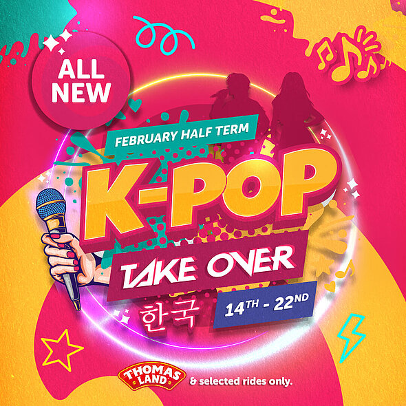 14. bis 22.Februar Drayton Manor: K-Pop Takeover ist das Motto für die diesjährige February Half Term. Dabei geht es um bunte Energie, Musik und Tanz. Die Attraktionen in Thomas Land und der Zoo sind für diese Zeit geöffnet.