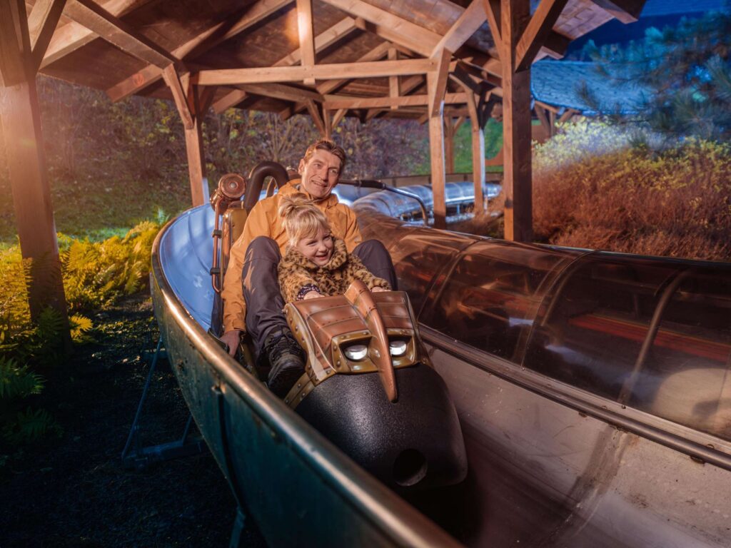 Das Grundprinzip bleibt erhalten: Besucher können die Geschwindigkeit ihres Fahrzeugs weiterhin selbst steuern. Im Gegensatz zur bisherigen Anlage fahren die neuen Fahrzeuge jedoch nicht mehr durch eine klassische Rinne, sondern auf Schienen.